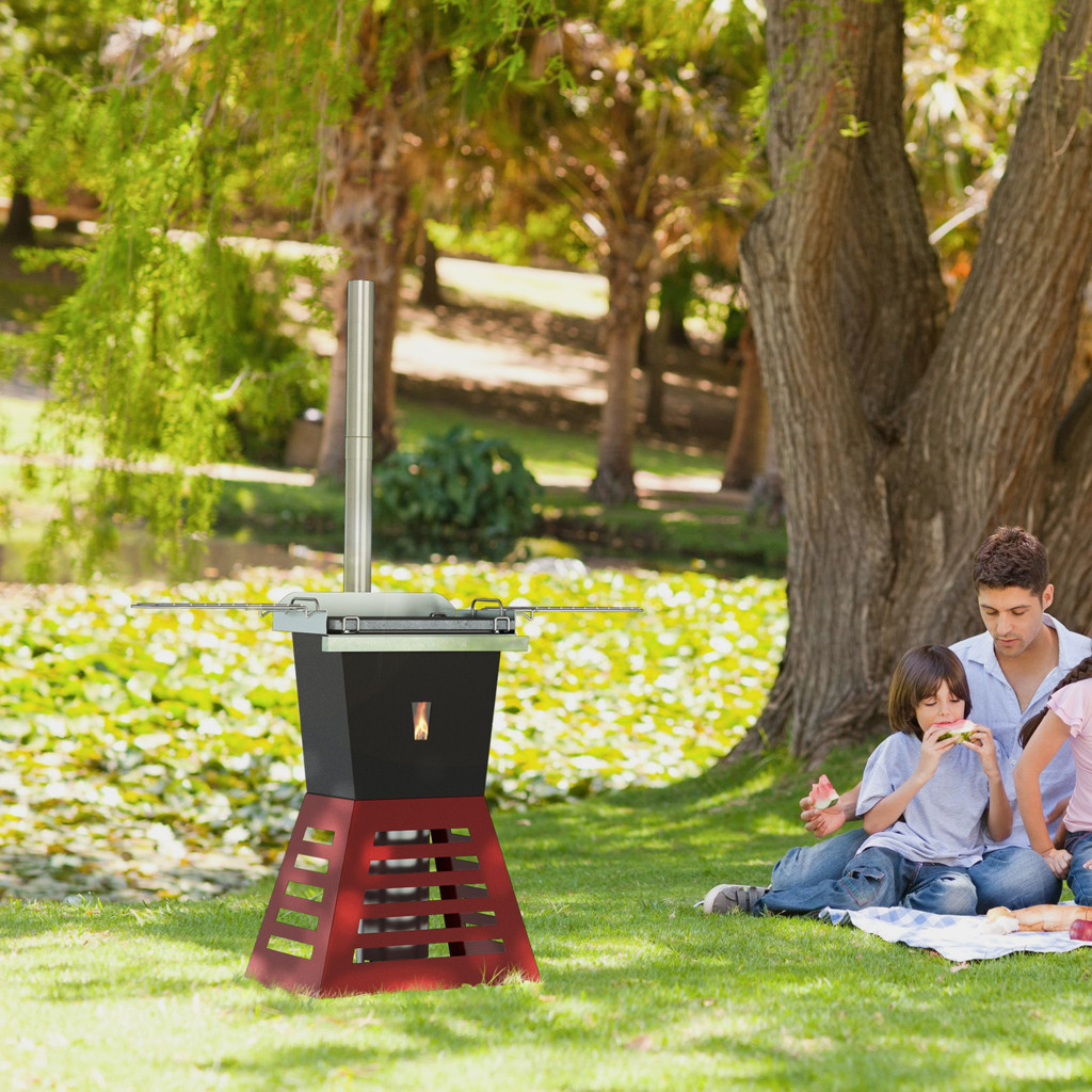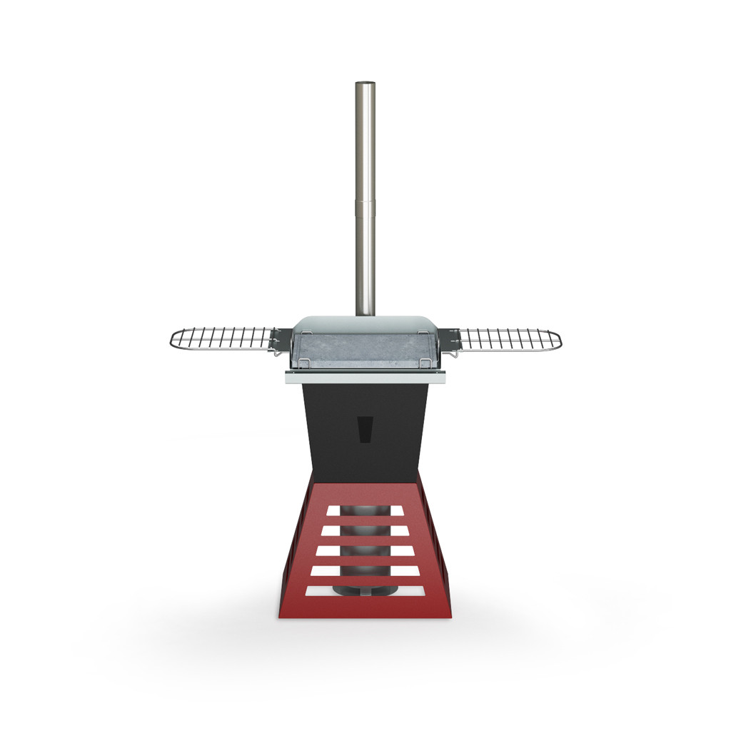 Prodotto particolarmente adatto a campeggi e alla vita all’aria aperta. Completo di griglie laterali poggia vivande, spazzola 3 in 1, tubo di scarico fumi e comignolo.